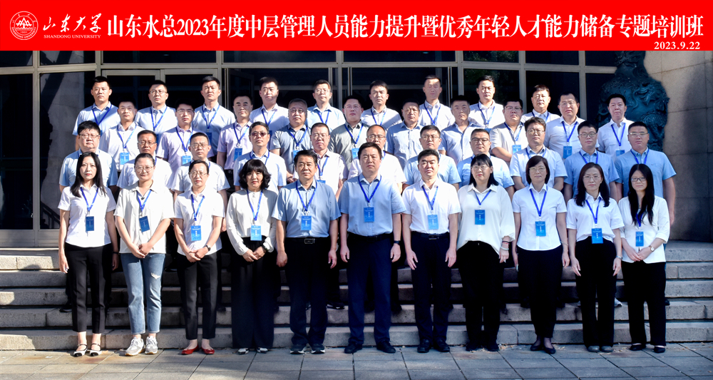 为进一步提升公司中层管理人员管理能力和优秀年轻人才的综合素质,打造高素质专业干部队伍,9月22日—23日,山东水总有限公司联合山东大学在山东大学中心校区举办2023年度第一期中层管理人员能力提升暨优秀年轻人才能力储备专题培训班。公司中层管理人员、优秀年轻后备人才共50余人参加培训。
