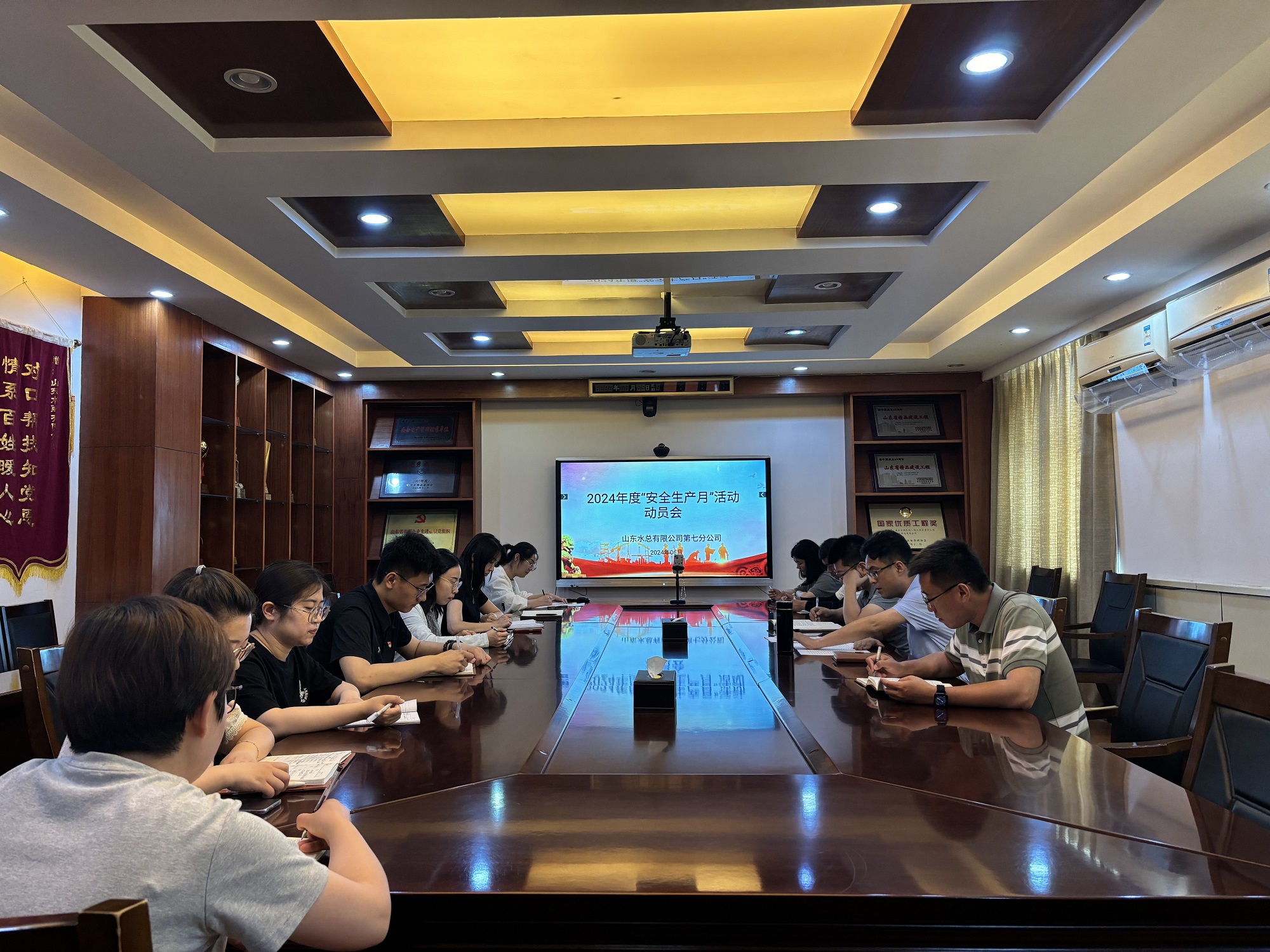 动员会上,韩栋带领大家学习了习近平总书记关于安全生产重要论述,集体观看了警示教育片,宣贯了《山东水总有限公司2024年“安全生产月”活动方案》。