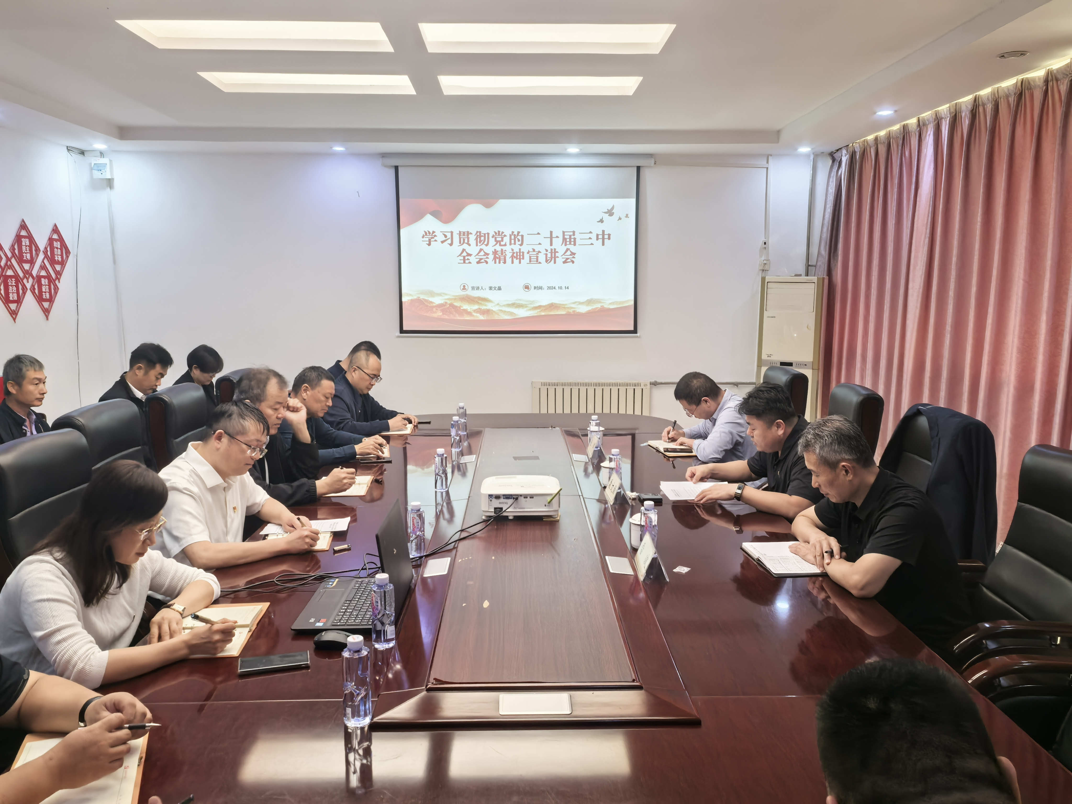 为深入学习贯彻党的二十届三中全会精神,凝聚广大党员干部思想共识,巩固党纪学习教育成果,10月14日,公司党委书记、董事长裴文晶到二局有限公司党建工作联系点开展“学习贯彻党的二十届三中全会精神 持续巩固和深化党纪学习教育成果”专题党课暨学习贯彻党的二十届三中全会精神宣讲会,公司党委委员、纪委书记雷波等陪同。
