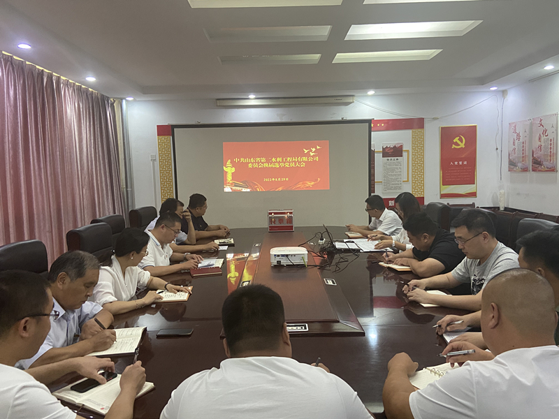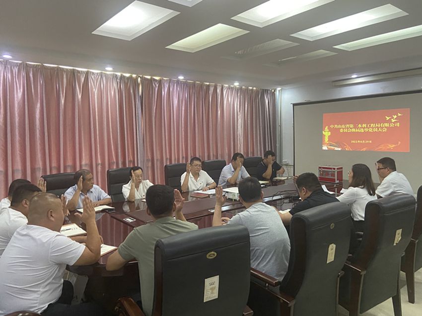 经山东水总党委批准,8月29日下午,二局有限公司党委召开全体党员大会,进行党委换届选举工作。会议由党委书记、执行董事、总经理王传波主持,公司全体党员参加。