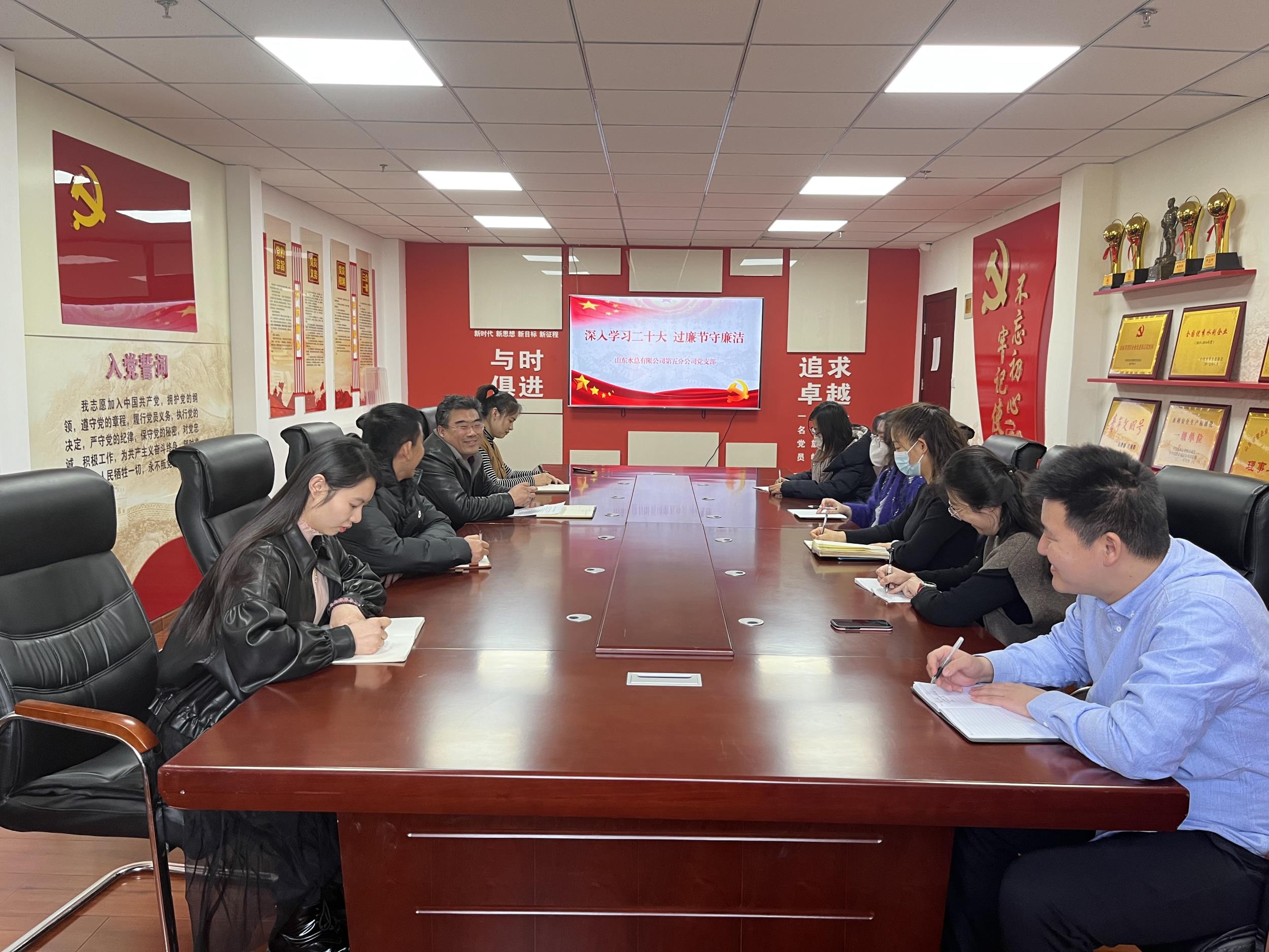为进一步学习贯彻党的二十大精神,抓好春节期间党风廉政建设,1月19日,第五分公司党支部开展主题党日暨春节廉政党课专题会议。